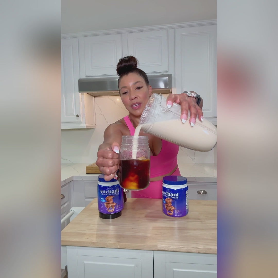 Imagine a Rich and velvety caramel drizzled over a smooth blend of cream and coffee, but this time powered with 20grams of Collagen peptides, Omega 9 fats, Fiber and the same enchanting taste! Introducing Enchant Collagen shake powder in Caramel Macchiato flavor, made with caramel cream flavors with rich taste and exceptional aroma complimented by subtle notes of aromatic coffee.